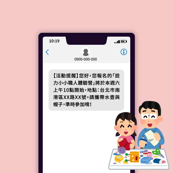 活動前發送提醒簡訊,有效降低家長與孩子遲到或缺席的機率。